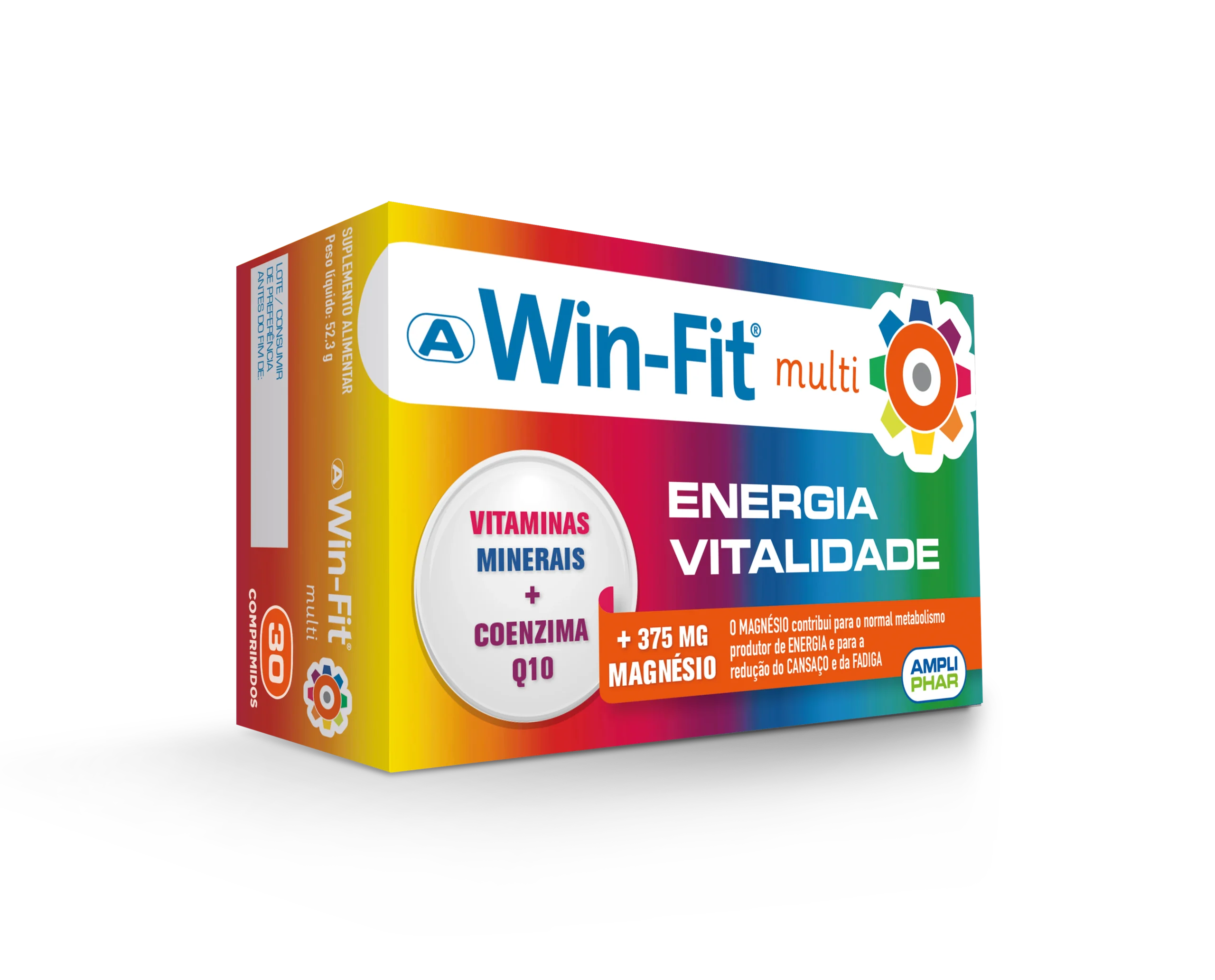 Win-Fit® multi contém 375 mg de magnésio (100% do VRN). O magnésio participa na produção de energia e contribui para a redução do cansaço, da fadiga muscular e de cãibras.